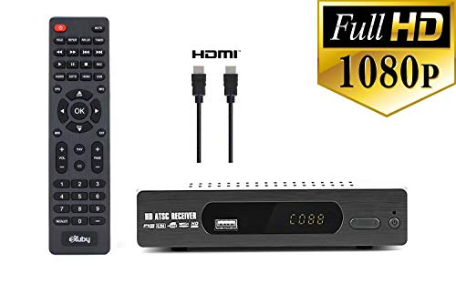 Exuby DTV Converter Box with HDMI Cable for Recording and Viewing Full HD Digital Channels for Free (Instant or Scheduled Recording, 1080P HDTV, HDMI Output, 7 Day Program Guide and LCD Screen)