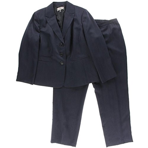 Le Suit Women's Plus Size Herringbone 3 Button Notch Pant Suit, Navy, 18W