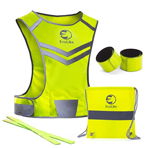Reflective Vest with PocketUnique Design + 2 Wristbands + Bag | High Visibility Gear Set Perfect for Running Walking Cycling Jogging Motorcycle Safety & Construction | Fully Adjustable(Mens & Womens) W/Lightweight Comfortable & Breathable | Fluorescent Ye