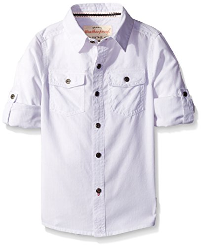 Weatherproof Boys' Little Long Sleeve Poplin Plaid Shirt, Copen Blue Stripe, 5