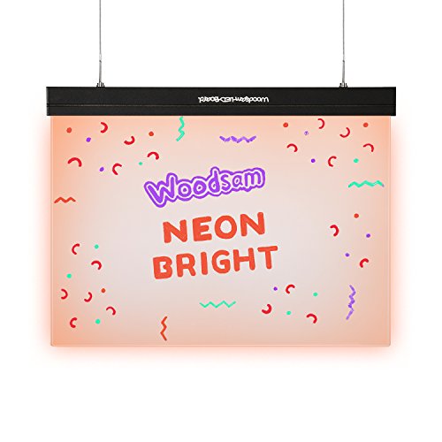 Woodsam LED Writing Drawing Board - 16" x 12" Illuminated Erasable and Non Porous Clear Glass Surface with 2 Fluorescent Liquid Chalk Markers - Great for Kids Home Business Office Holiday Gift