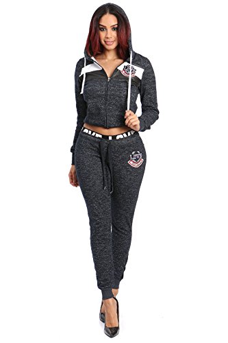 Women Active Athletic Lounge 2 Piece Set Sweatpant and Zip Up Hoodie Jacket