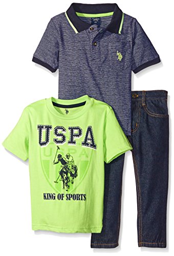 U.S. Polo Assn. Boys' 3 Piece Short Sleeve Polo, Graphic T-Shirt, and Denim Jean Set