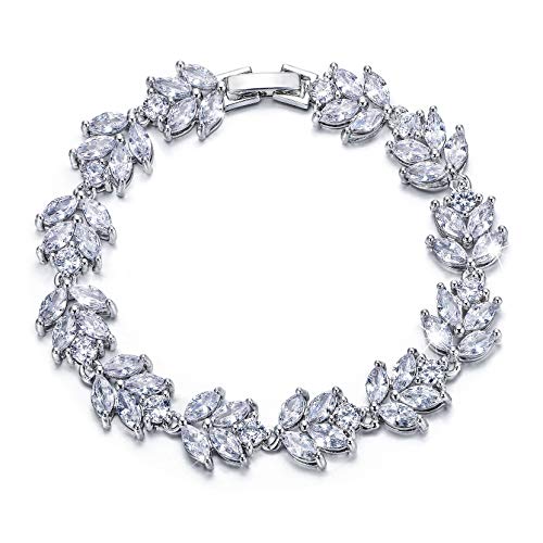 EVER FAITH Silver-Tone Full Cubic Zirconia December Birthstone Leaf Bridal Roman Tennis Bracelet Clear