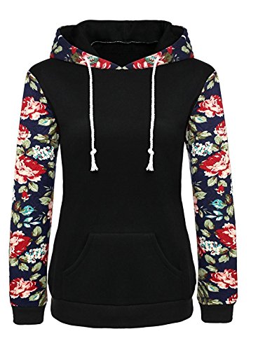 AOVCL Women's Fashion Floral Printed Tops Hoodies Tee Sweatshirt