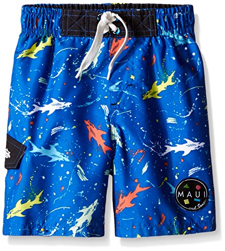 Maui & Sons Little Boys' Blue Swim Trunk With All Over Shark Prints, Multi, 7