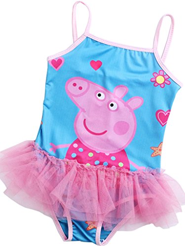 Toddle Cartoon Pig-Baby Girls Chiffon Bow Top Tutu 1 Piece Tankini Swimsuit Swimwear, Green, 4-5 Years