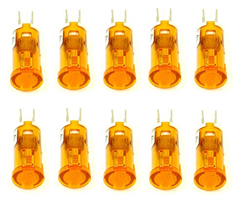 PACK OF 10 YuCo NEON 9MM MINI PILOT LIGHT AMBER 120VAC TERMINAL PLUG-IN FLAT ROUND CAP MINIATURE LIGHT YC-9TPT-5A-120-N-10