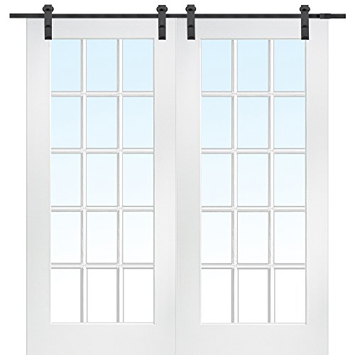 National Door Company ZZ09622 Primed MDF 15 Lite True Divided Clear Glass 60" x 80", Barn Door Unit