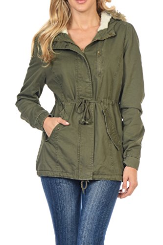 Keebon Apparel Women's Faux Fur Lined Fashion Military Hoodie Coat Jacket