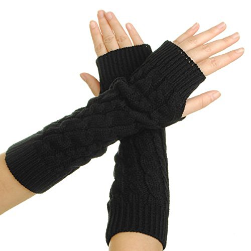 Eforcase Women Lady Girl Knitted Crochet Long Soft gloves Winter Warmer Braided Arm Fingerless Gloves Stretchy Wamer Knitting Thumb Hole Gloves Mittens Winter Hand Warmer Great gift for Xmas (Black)