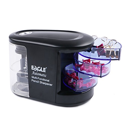Eagle Electric Pencil Sharpener, Heavy-Duty, Battery Operated, Helical Steel Blades, With Drawers for Sundries (Black)