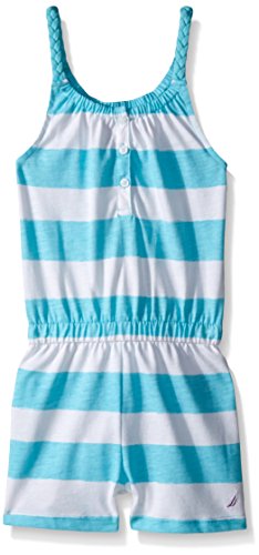 Nautica Girls' Printed Stripe Romper with Braided Straps