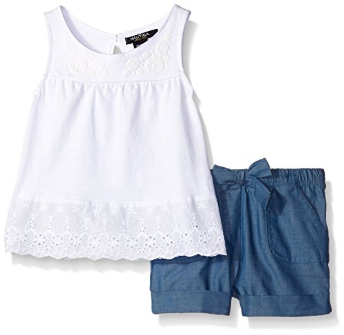 Nautica Girls' Eyelet Trim Knit Top with Chambray Short Set