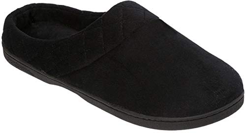 Dearfoams Womens Velour Quilted Clog Slippers (Large, Black)