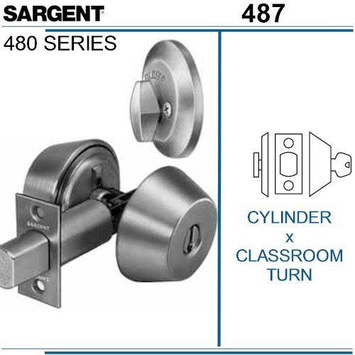 SARGENT 487-26D CYLINDER X CLASSROOM TURN DEADBOLT, GRADE 1: SATIN CHROME