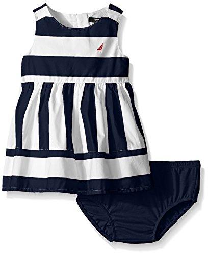 Nautica Baby Girls' Multi-Directional Stripe Dress, Navy, 18 Months