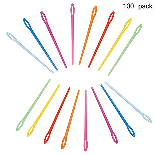 100 pcs 7CM/2 3/4"Plastic Hand Sewing Yarn Darning Tapestry Needles Plastic Lacing Needles Notions Craft (Random Color)
