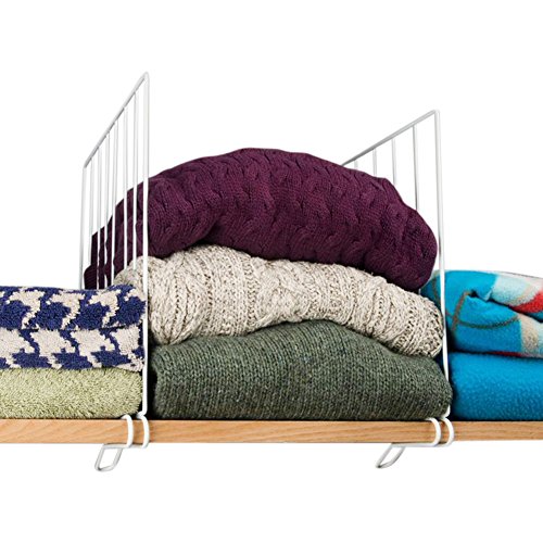 Evelots Set of 4 Closet Shelf Dividers for Wooden Shelving, Wire Design, White