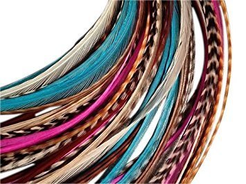 Feather Hair Extensions, 100% Real Rooster Feathers, 20 Long Thin Loose Individual Feathers NAT C