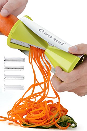 Oternal Vegetable Spiral Slicer Spiralizer for Spaghetti, Salad, Vegetable Noodles with 4 Stainless Steel Blade, 150% Bigger, 50% Less Vegetable Wastage (Blue)