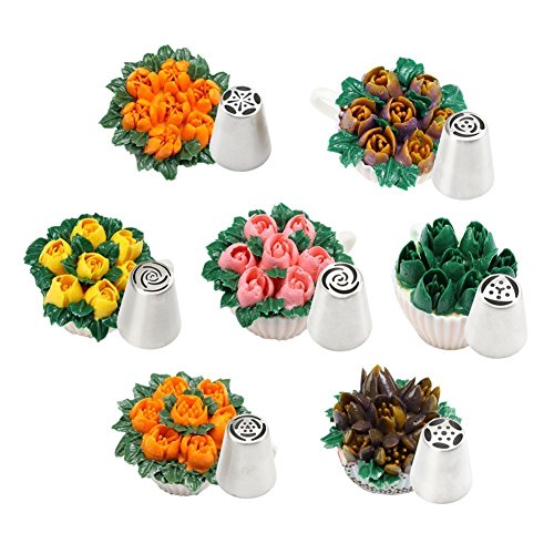 TANGCHU Russia Icing Piping Nozzles Pastry Tips Cake Sugarcraft Decorating Tool Set Of 7 Pieces
