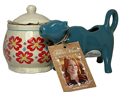 Pioneer Woman Flea Market Teal Blue Cow-Shaped Creamer and Floral Sugar Bowl Set