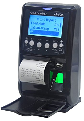 AT5000 Fingerprint & Badge Employee Time Clock with Printer, Battery, USB Drive and 5-Badges Included