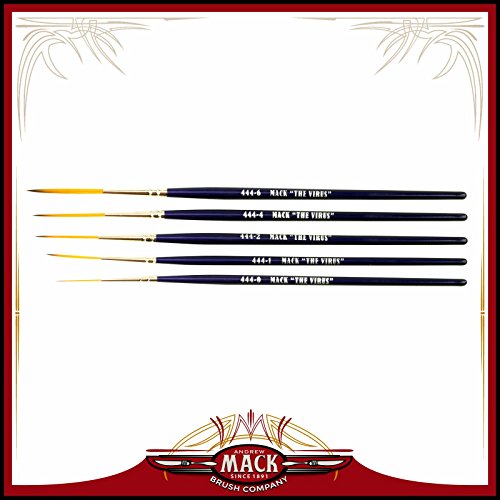 Set of 5 Size 0-6 Series 444 The Virus Scrolling Script Pinstriping Brush with Specially Blended Golden Taklon