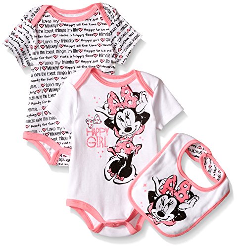 Disney Baby Minnie Mouse 2 Pack Bodysuit with Bib, Multi/White, 0/3 Months