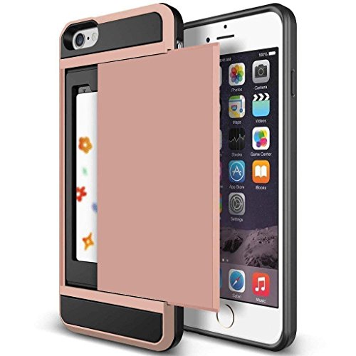 iPhone 6s Plus Case, Anuck Shockproof iPhone 6s Plus Wallet Case [Card Pocket] Anti-Scratch Protective Shell Rubber Bumper Case with Slide Card Holder Slot for Apple iPhone 6 Plus 6s Plus - Rose Gold