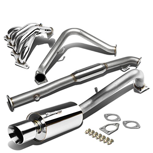 For Mitsubishi Eclipse 4-Cylinder Stainless Steel 4 inches Rolled Tip Catback System+Polished Exhaust Header