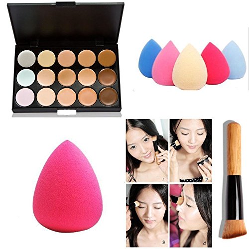 Fashion Women Professional 15 Color Makeup Cosmetic Contour Concealer Palette Make Up+Sponge+Concealer Brush