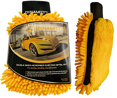 Microfiber Car Wax, Polish and Dusting Mitt, Dual-sided, Thicker Polishing Sponge and Shorter, Denser Chenille Fingers