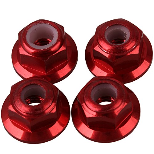 BQLZR 10.3mm OD Red 102049 (02190) Aluminum Nylon Nut M4 for HSP 1:10 RC Car Upgrade Parts Pack of 4