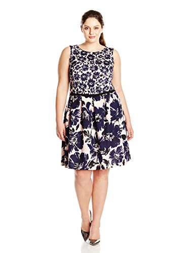 Taylor Dresses Women's Size Floral Scuba Dress Plus, Pink/Navy, 14W