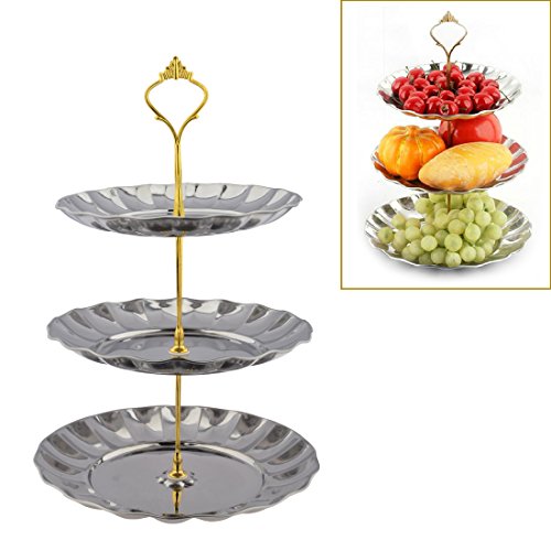 Candy Buffet Stand, Petforu 3-tier Fruits Cakes Desserts Sliver Color Stainless Steel Plates stand for Wedding Buffet
