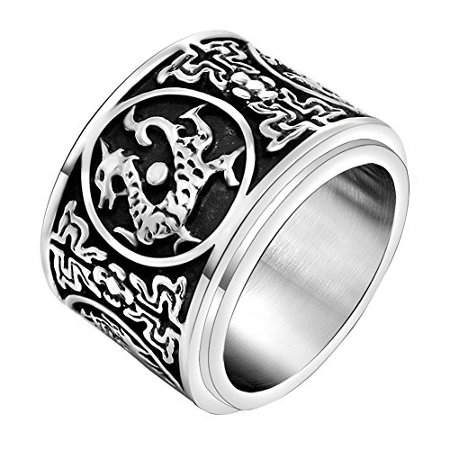 FANSING Mens Spinner Rings, Chinese Ancient Guardian Beast, Stainless Steel, Size 7-11