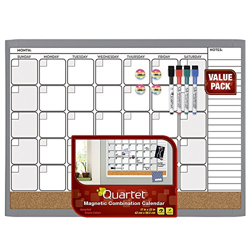Quartet Dry Erase Cork Calendar Board Combo Value Pack, Magnetic, Gray Frame (44202-GR)