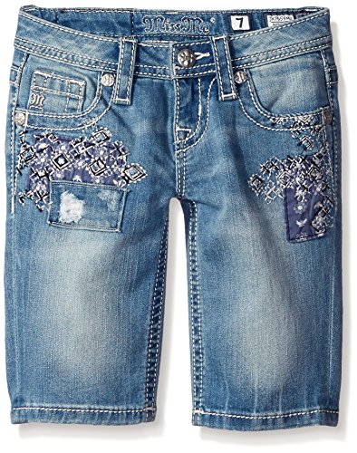 Miss Me Girls' Little Embroidered Bermuda Denim Short, Light, 8