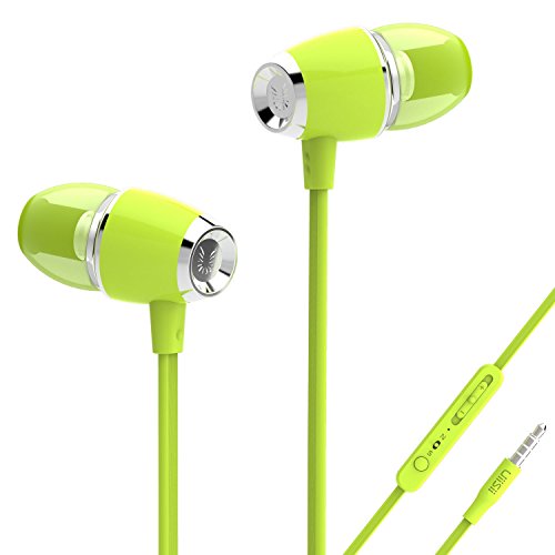 UiiSii U5 Earbuds with Microphone and Volume Control Music Headphones with Tangle Free Flat cable (Green)