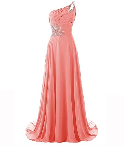 HTYS Women's One Shoulder Beadings Chiffon Bridesmaid Long Prom Dresses HY062