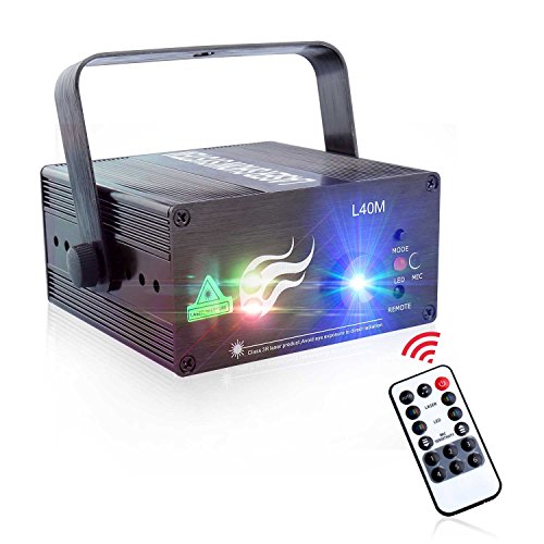 Decolighting Laser Light 40 Patterns Mini Stage Laser Lights, R&G Laser Projector Light and Blue LED with Remote Control for Home Party and Stage Laser Lighting or New Form of Entertainment for Kids