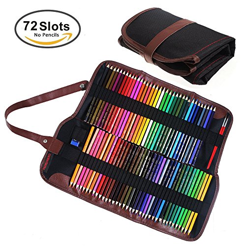 Pencil Case Huhuhero 72 Color Pencil Holder Organizer Art Colored Pencils Roll up Pouch Canvas Pen Bag for School Office Art for Students Artist Hobbyist