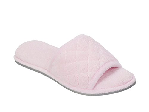 Dearfoams Women's Microfiber Quilted Terry Slippers, Fresh Pink, Medium