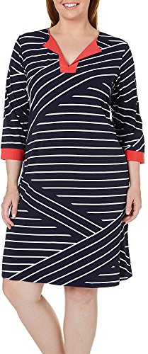 Tiana B Women's Plus Size Pattern Knit Dress with Contrasting Combo Solid Neck and 3/4 Sleeves Cuffs, Navy/Coral, 18W
