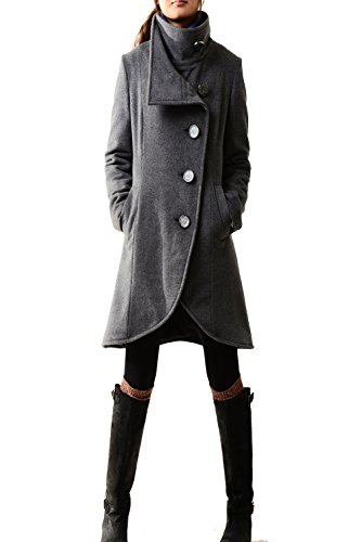Idea2lifestyle Women's Cashmere Coat Crystal Buttoned Gray