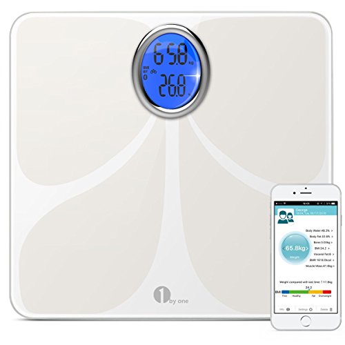 1byone Digital Bluetooth Scale Body Fat Scale Body Scale Bathroom Scale with Phone and Tablet App to Manage Your Weight