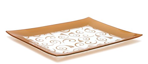 GAC Tempered Glass Tray Rectangular Glass Platter Unbreakable – Chip Resistant – Oven Safe – Microwave Safe – Dishwasher Safe – Stackable Decorative Plate and Glass Serving Tray Gold