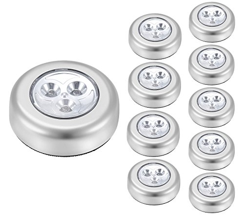 10 Pack Ipow LED Battery-powered Wireless Night Light Stick Tap Touch Lamp Stick-on Push Light for Closets, Cabinets, Counters, or Utility Rooms,Cordless Touch Light,Batteris Not Included